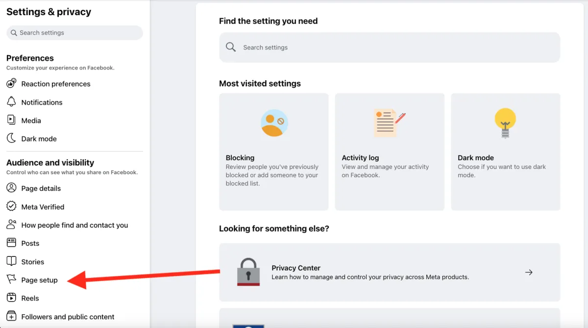 Select Page Setup under Audience and visibility.
