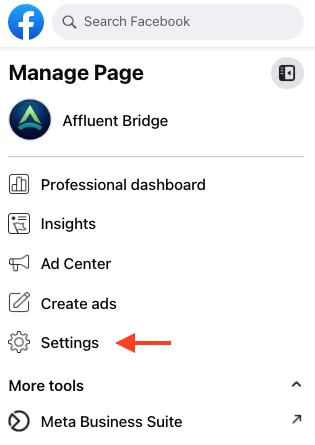 Navigate to your Facebook page then select Settings on the lefthand side.