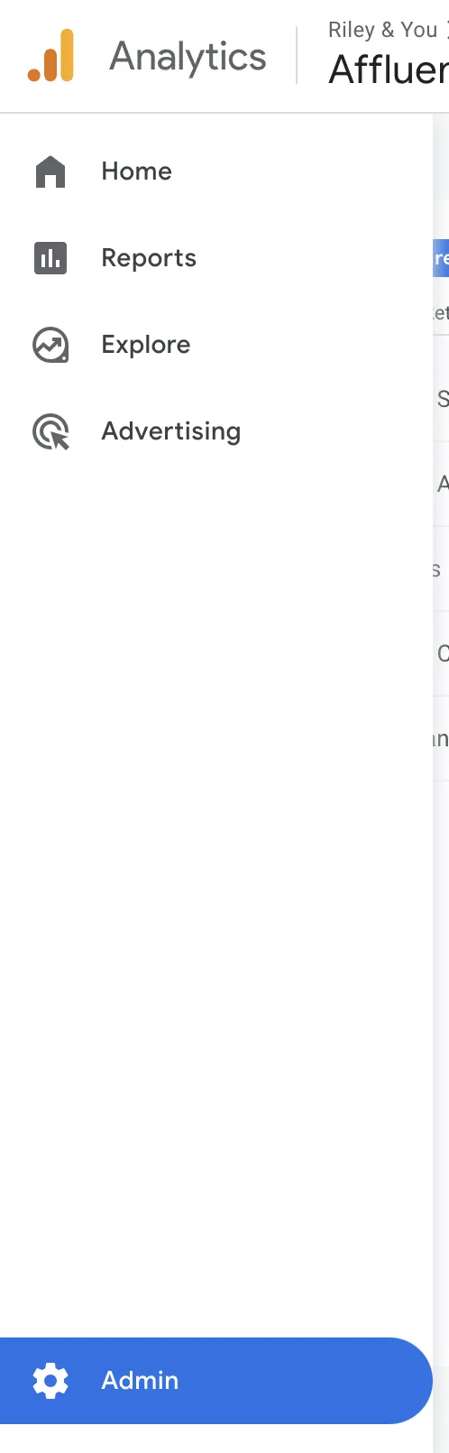In your Google Analytics 4 account, select ADMIN from the left menu.